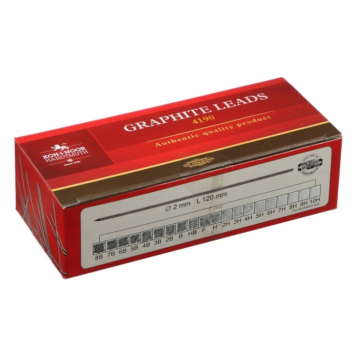Грифели для цанговых карандашей 2.0 мм, Koh-I-Noor, 4190 HB, 12 штук, в футляре