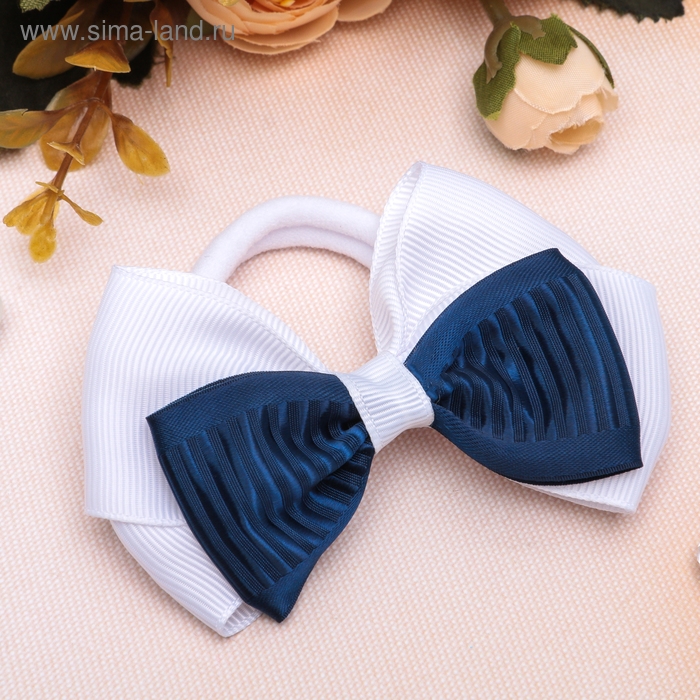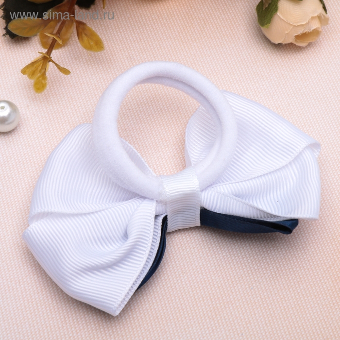 Резинка для волос "Школьница" бант классика, 8 см, бело-синий