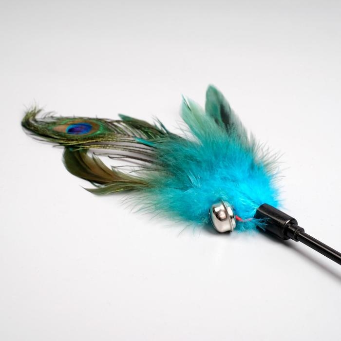 Дразнилка "Перо павлина" с бубенчиком, ручка 49 см, микс