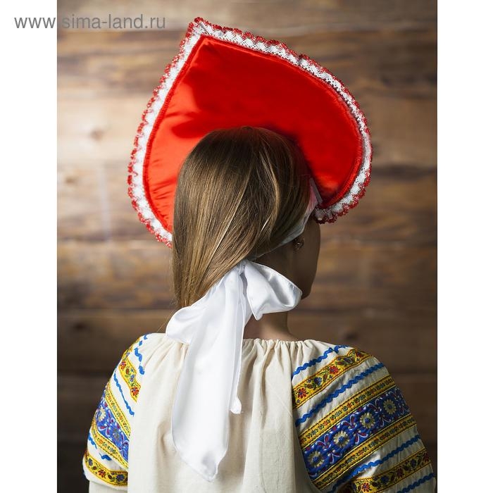 Кокошник «Хохлома принт», красный атлас, ленты МИКС