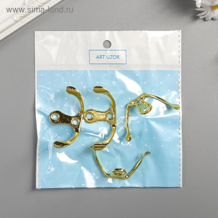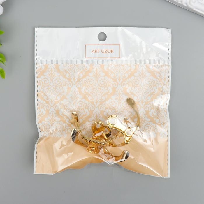 Крючок металл двойной (набор 4 шт) золото 4,5х3 см
