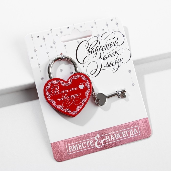 Замок для торжественной свадебной традиции - это символ любви. Навесной замок любви на свадьбе становится символом нерушимого союза, заключенного влюбленными в этот день. По традиции замок вешается на мост, загадывается желание о счастливой семейной жизни, а ключи от него выбрасываются в реку, через левое плечо. Это делается для того, чтобы никто никогда не смог открыть этот замок и нарушить клятву, данную влюбленными. Свадебный замок можно повесить на мост по традиции или на дерево в специалных парках или аллеях молодожен, которые есть во многих городах. Замок навесной свадебный имеет в комплекте ключик, замок закрывается и открывается. Традиция закрывать замок на свадьбу объединяет сердца мужа и жены навсегда. Свадебный декоративный замочек будет отлично смотреться на фотосессии и видео.