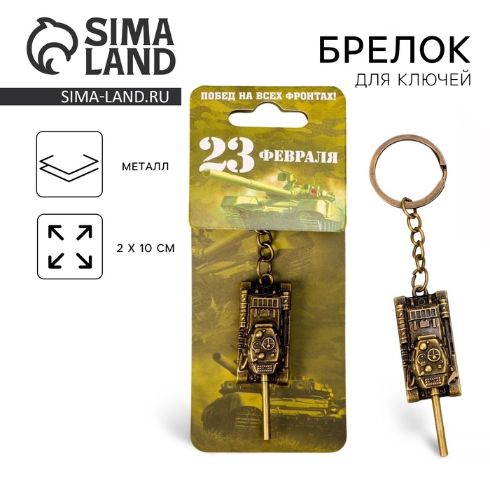 Брелок для ключей металлический «Побед на всех фронтах. 23 февраля», танк, 2 х 10 см