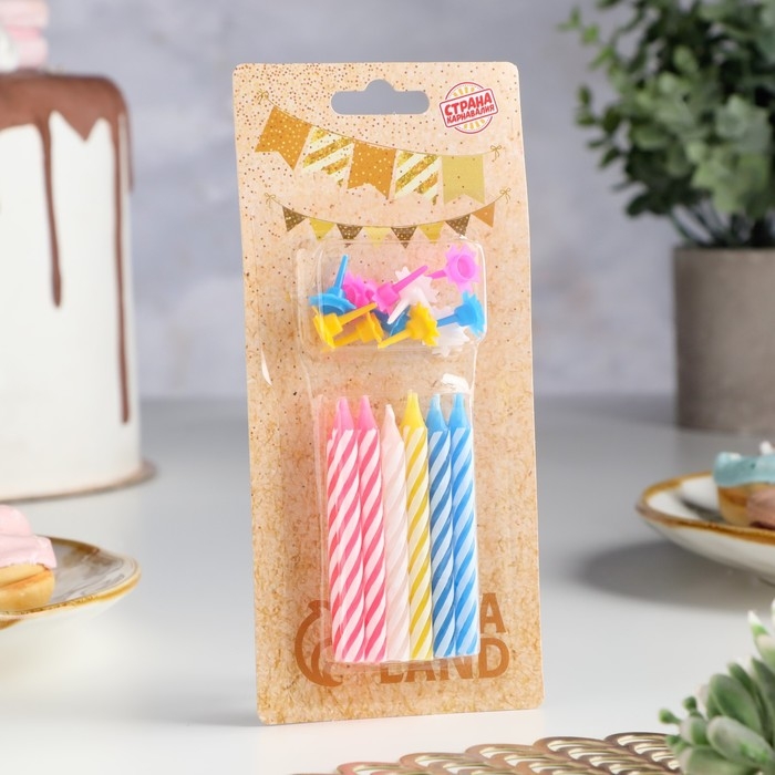 Свечи в торт "Спираль", 6.5х0.5см, 12 шт