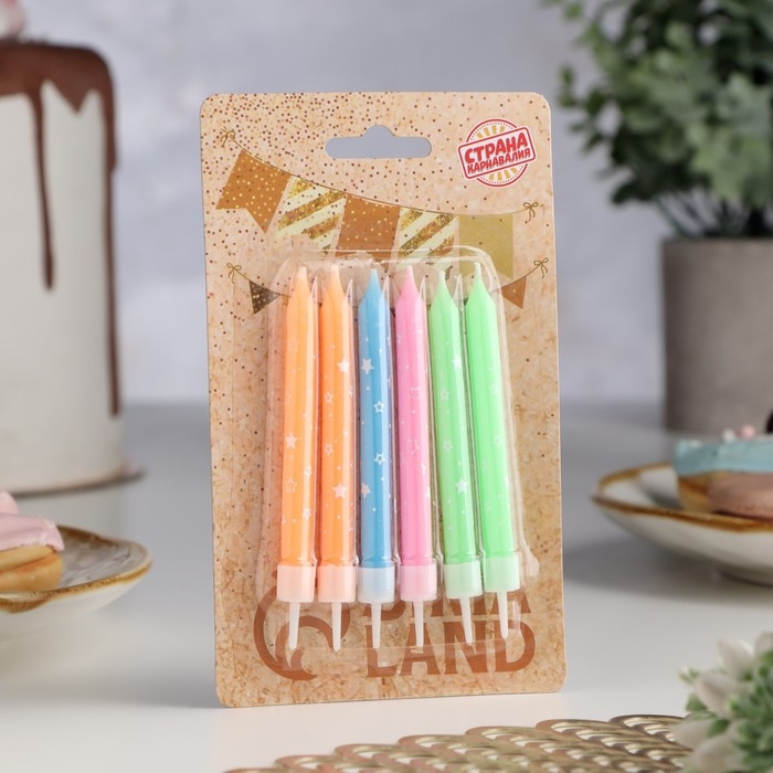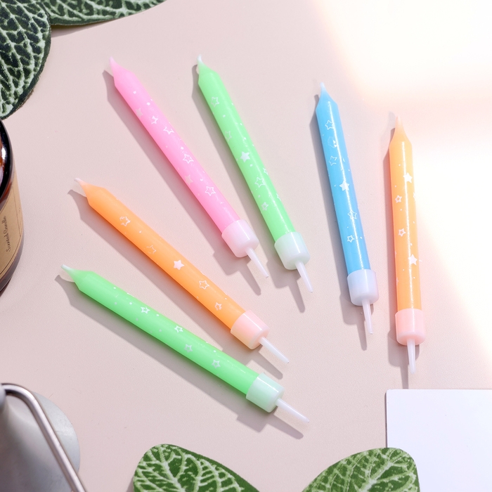 Свечи в торт "Звезды", 7х0.6 см, 6 шт
