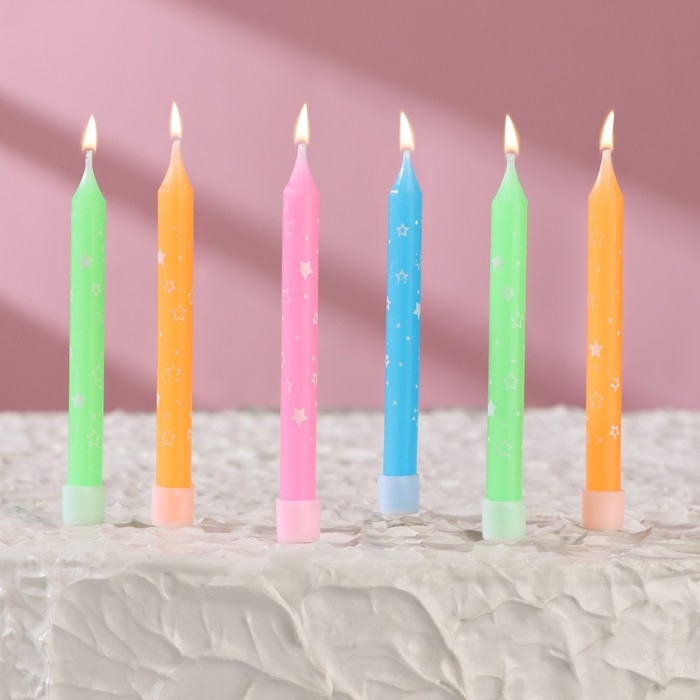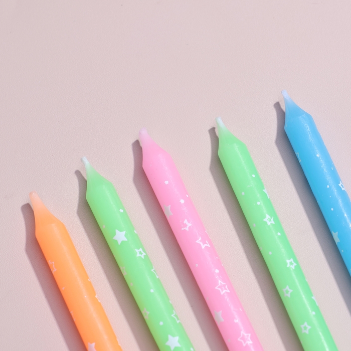 Свечи для торта "Неон", 12 шт, разноцветные, высокие, 10 см