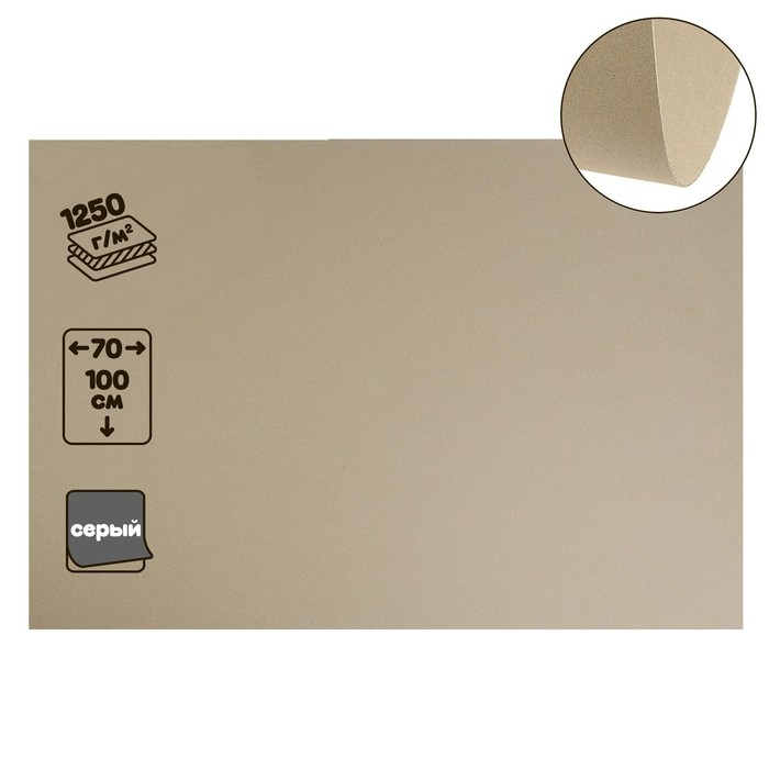 Картон переплётный (обложечный) 2.0 мм, 70 х 100 см, 1250 г/м2, серый