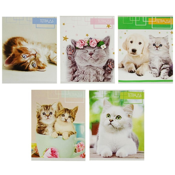 Комплект тетрадей из 5 штук, 48 листов в клетку Calligrata "Любимые питомцы", обложка мелованная бумага, блок №2, белизна 75% (серые листы)