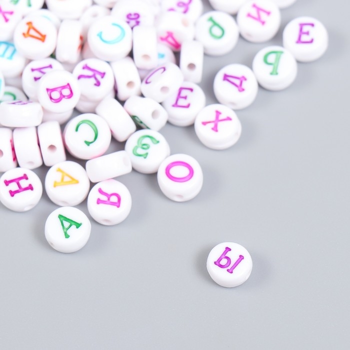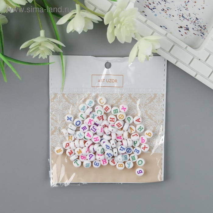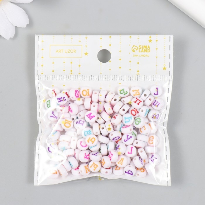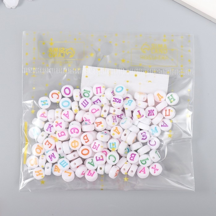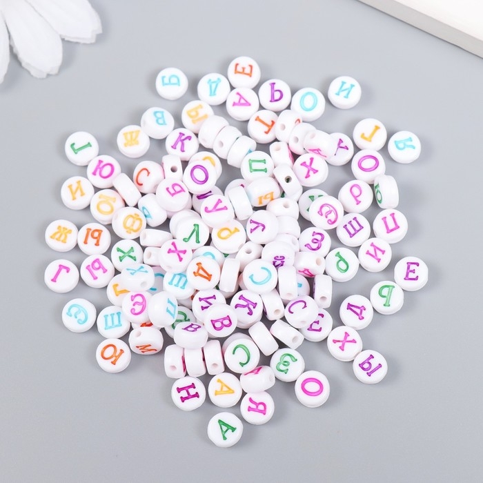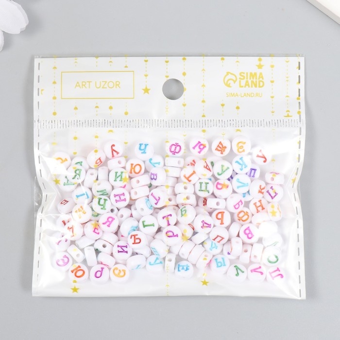 Бусины для творчества пластик "Алфавит на русском" белые набор 20 гр 0,5х0,5 см