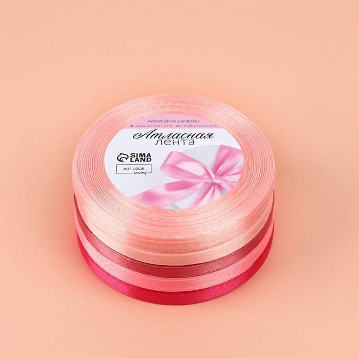 Набор атласных лент, 5 шт, размер 1 ленты: 6 мм × 23 ± 1 м, цвет розовый спектр