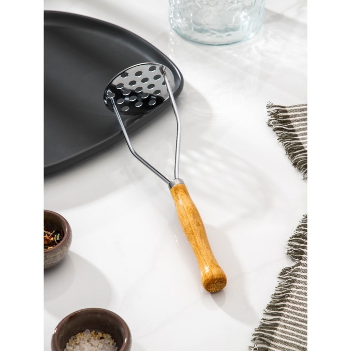 Картофелемялка-толкушка Доляна, 26×4.3 см, берёза