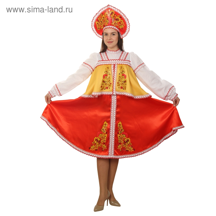 Русский женский костюм: платье с отлетной кокеткой, кокошник, цвет красно-жёлтый, р-р 42, рост 170 см