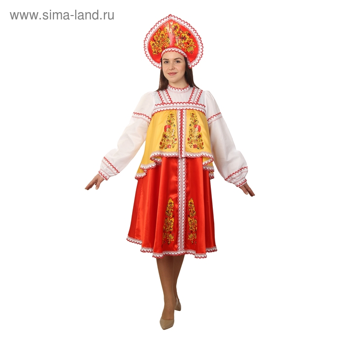 Русский женский костюм: платье с отлетной кокеткой, кокошник, цвет красно-жёлтый, р-р 44, рост 170 см