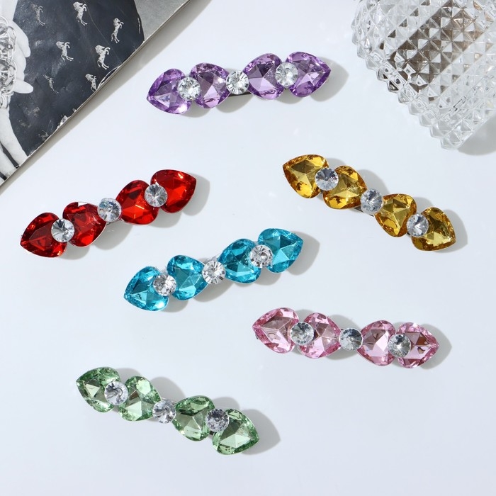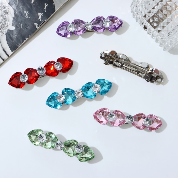 Заколка-автомат для волос "Грани" сердечки, 8 см, микс