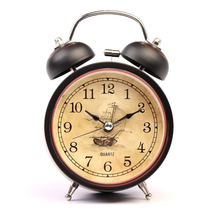 Часы настольные будильник с подсветкой «Корабль», плавный ход, циферблат d-7.5 см, 13×9 см