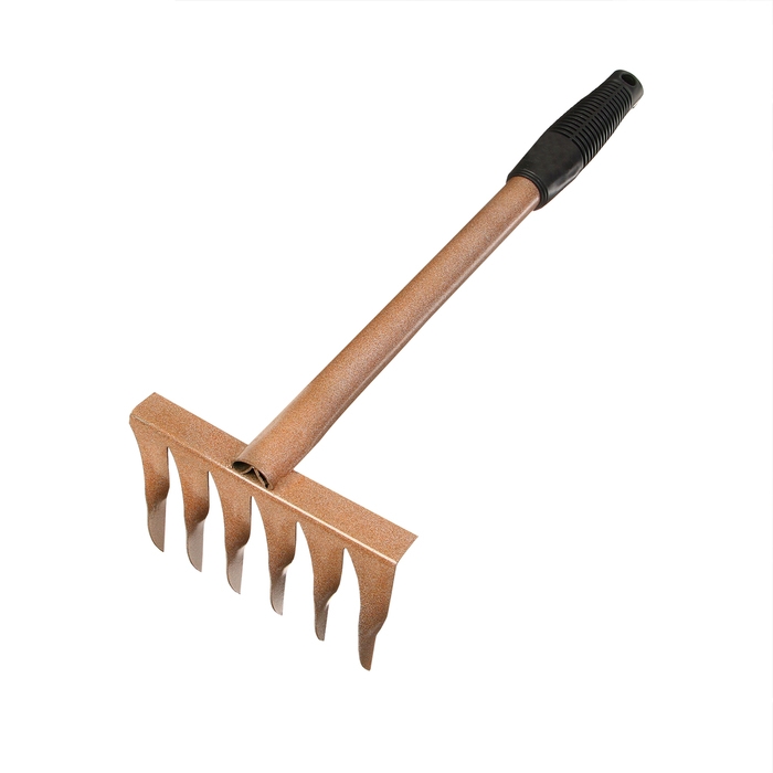 Малые прямые грабли, 6 витых зубцов, длина 40 см, металл, металлическая ручка
