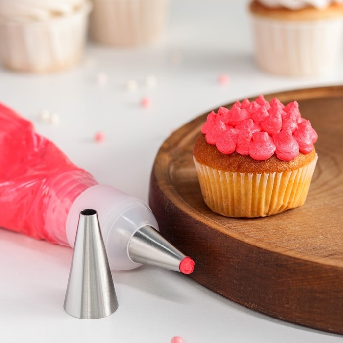 Насадка предназначена для нанесения на десерты необычных украшений из крема. Пользоваться изделием просто: достаточно присоединить его к универсальному кондитерскому мешку.