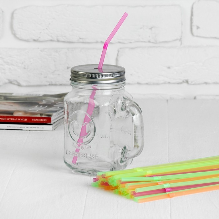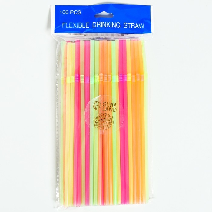 Трубочки одноразовые для напитков Доляна, 21 см, d=5 мм, флуоресцентные, с гофрой, МИКС, 50 шт.