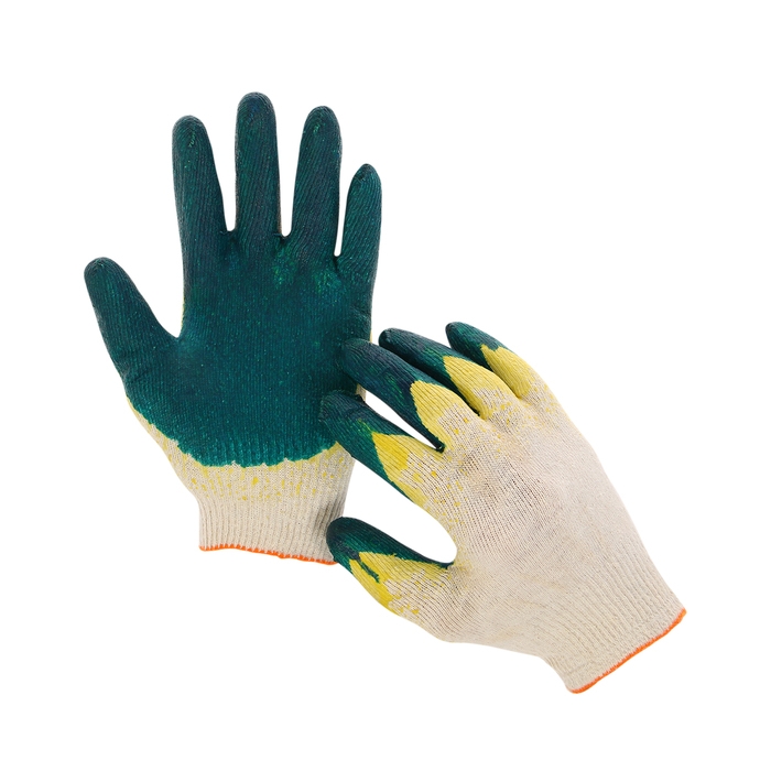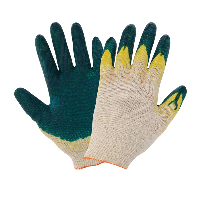 Перчатки садовые, хб, вязка 13 класс, размер 9, двойной латексный облив, зелёные