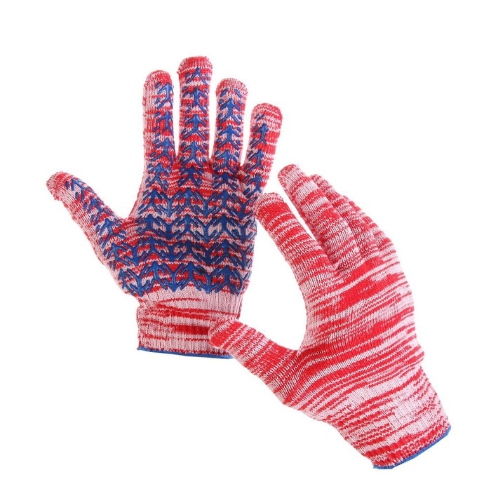 Перчатки рабочие, хб, вязка 10 класс, 5 нитей, размер 10, с ПВХ точками, красные, «Ёлочка»