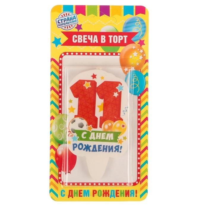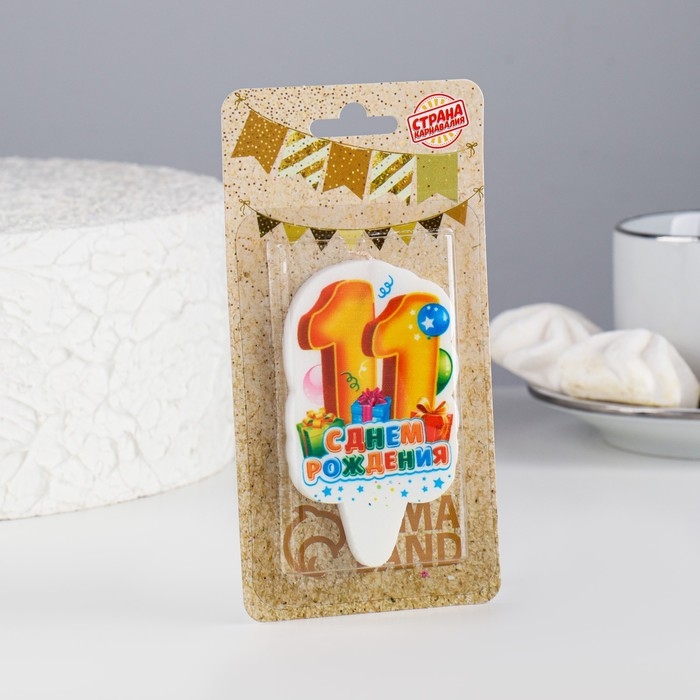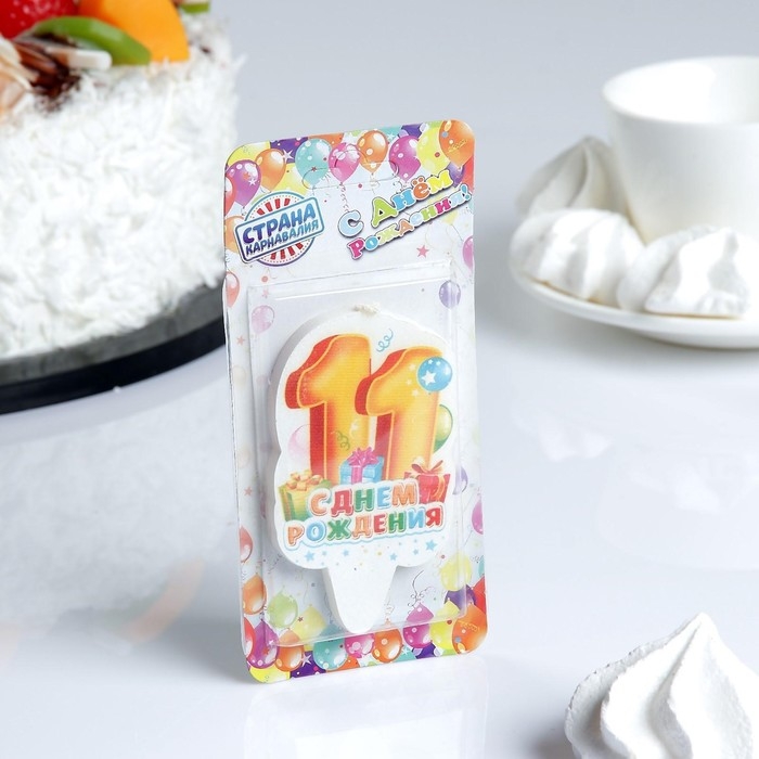 Свеча для торта цифра "С Днём Рождения" "11" красная, 6,5 см