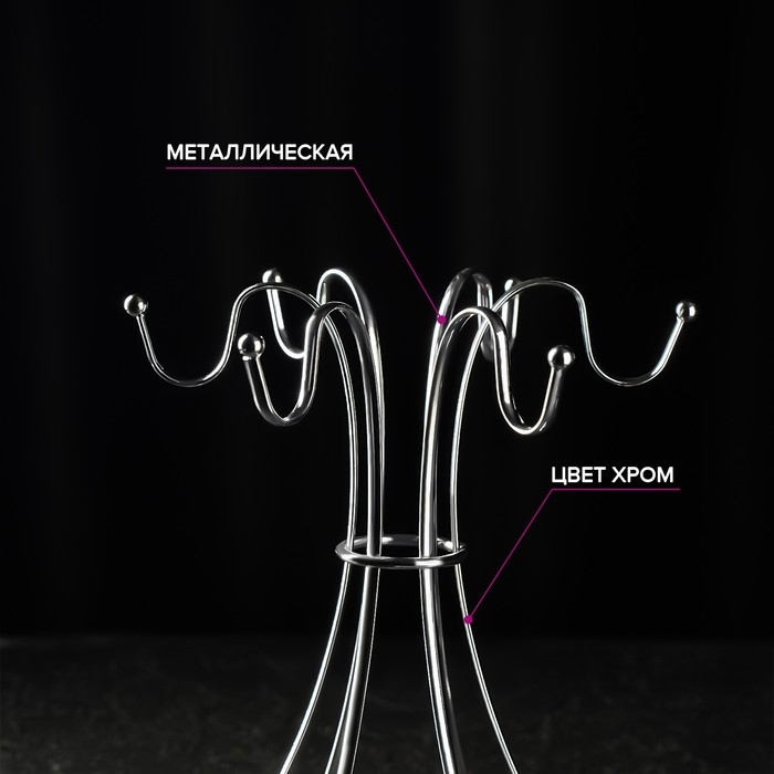 Подставка для кружек Доляна, на 6 предметов, 21×21×25 см, цвет хромированный