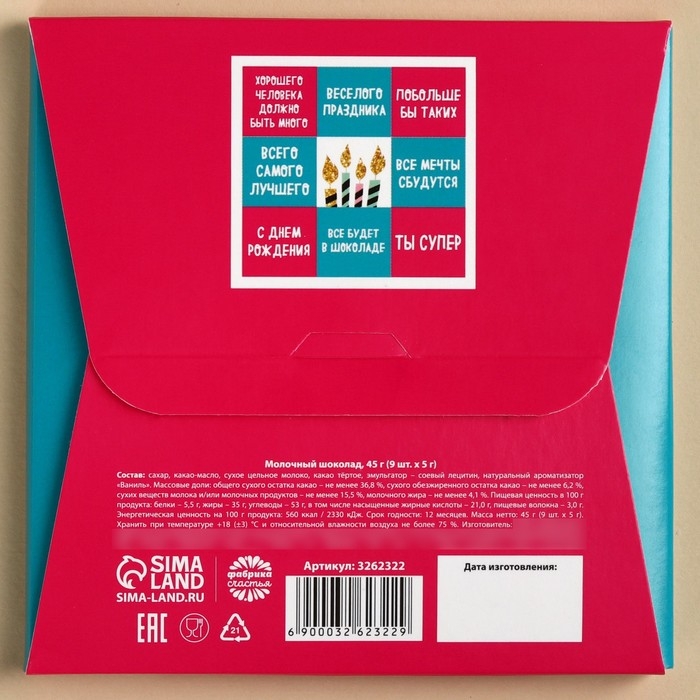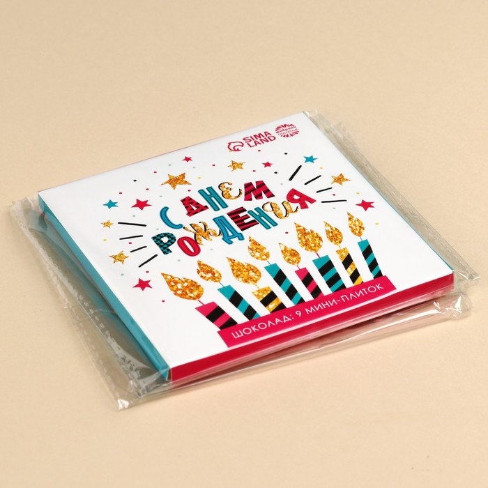 Шоколад молочный «С днём рождения», открытка, 5 г. х 9 шт.