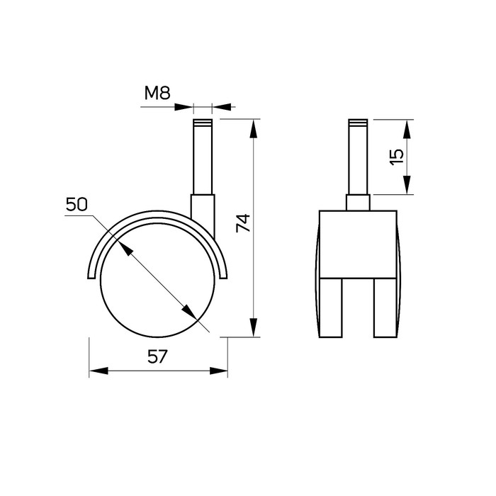 Колесо мебельное ОК 1м/х ОКП51М/Х, с футоркой, d=50 мм, черное