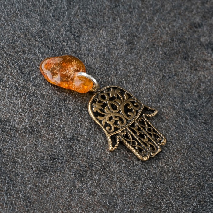 Брелок-талисман "Хамса", натуральный янтарь