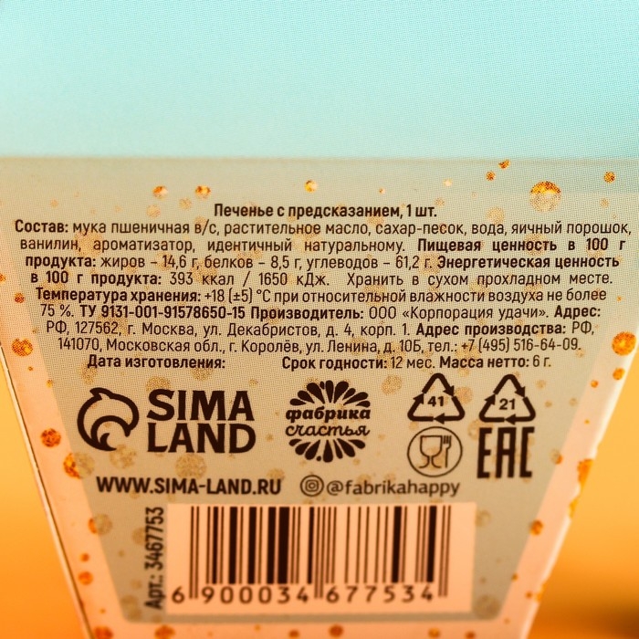 Печенье с предсказанием «Счастлив как енотик», 1 шт.