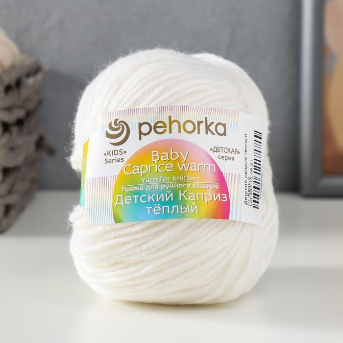 Пряжа для вязания спицами, крючком «Пехорский текстиль. Детский каприз тёплый», 50% мериносовая шерсть, 50% фибра, 125 м/50 г, (01 белый)
