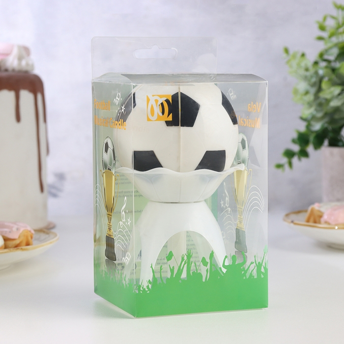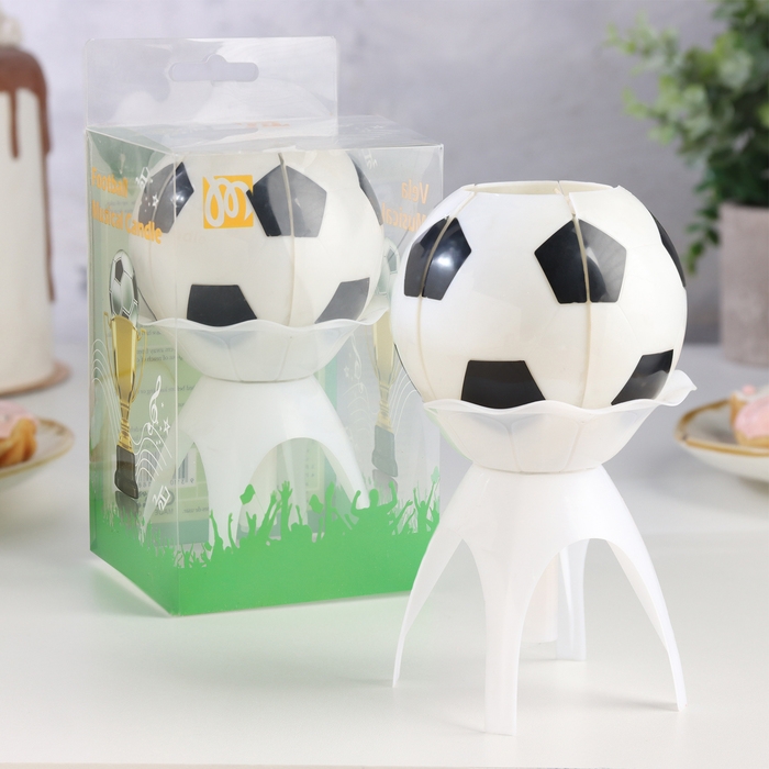 Свеча для торта музыкальная "Мяч", бело- чёрная