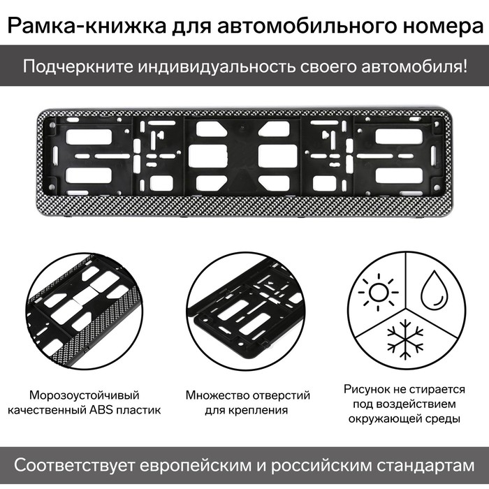 Рамка для автомобильного номера, книжка, чёрная подходит для всех типов автомобилей. Не требует дополнительных приспособлений для прочной фиксации: просто поместите номер в основу и закрепите его нижней планкой. Материал изделия устойчив к внешним воздействиям и перепадам температуры.