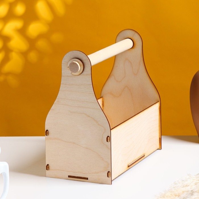 Кашпо деревянное 24.5×13.5×9.5(25) см Стелла Клик, с ручкой, натуральный
