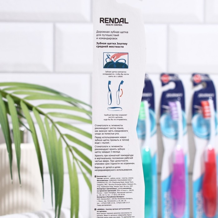 Зубная щётка Rendall Journey, средней жёсткости, складная, микс, 1 шт.