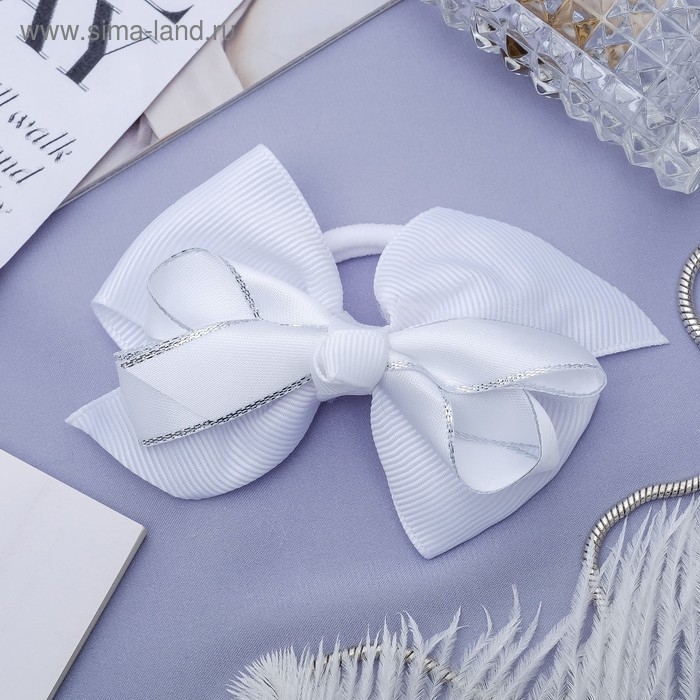 Резинка для волос "Школьница" бант серебристый кант, 9 см, белый