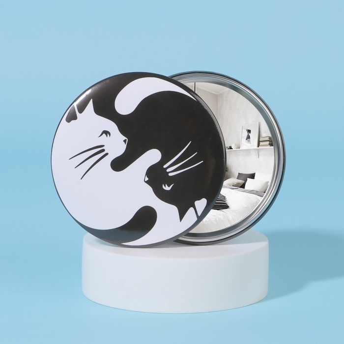 Зеркало карманное «Кошки», d = 7 см, цвет белый/чёрный