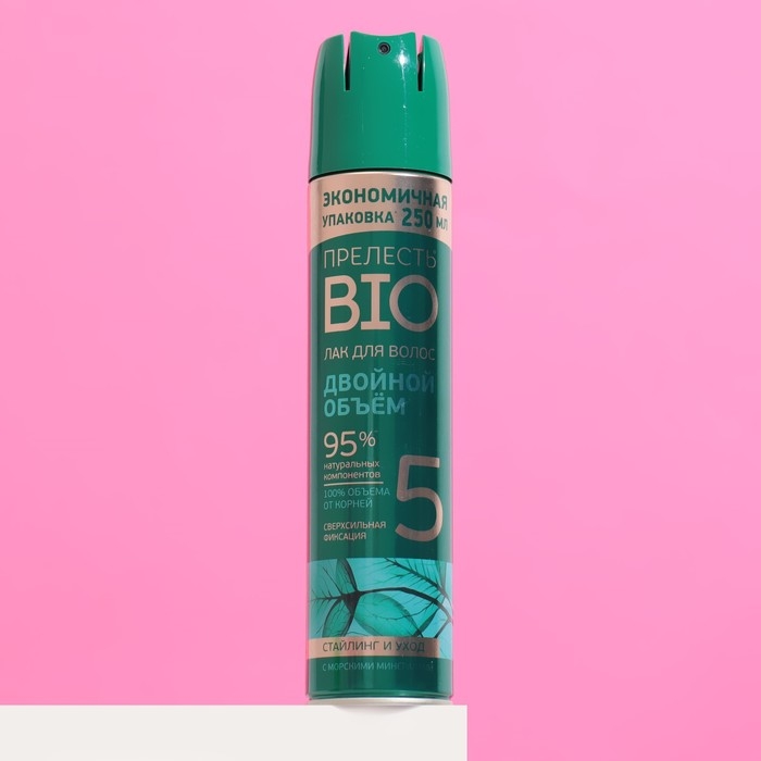 Лак для волос с морскими минералами обеспечивает усиленный объем у корней, фиксирует форму волос без утяжеления. Лак для волос без склеивания Прелесть Bio - это гарантия безупречной подвижной укладки на протяжении суток. Лак для волос кудри сделает объемнее и текстурнее без пушистости, сохранит форму локона и создаст ощущение ухоженности и уверенности в своем образе. Морские минералы и экстракт бамбука в составе лака для волос супер фиксации (5 - степень фиксации) вернет форму волосам изнутри и увеличивают их объем, создавая эффект увеличенной густоты. Лак для волос натуральный на 95% состоит из органических компонентов. Лак равномерно распыляется и фиксирует форму волос, создавая объемную прическу.