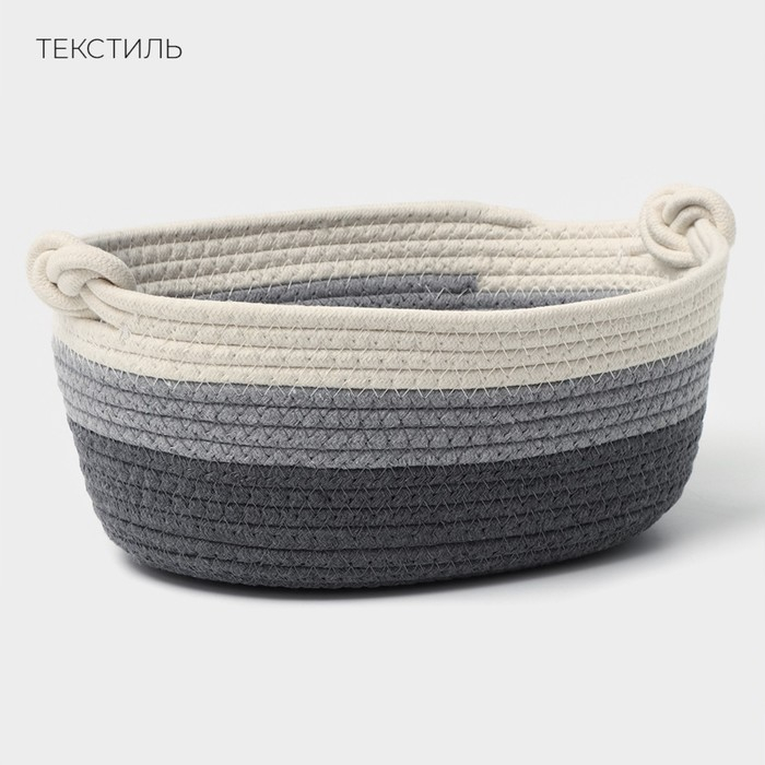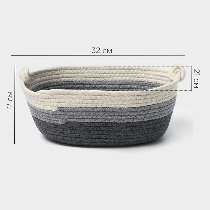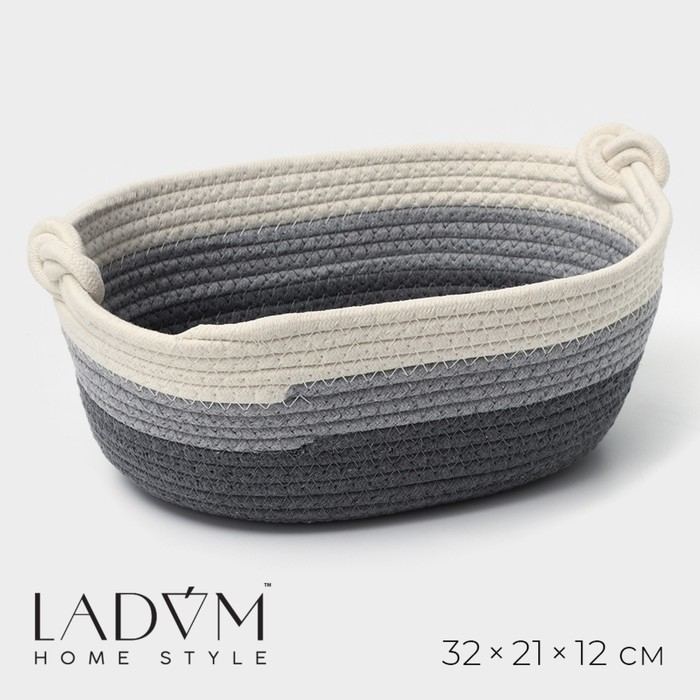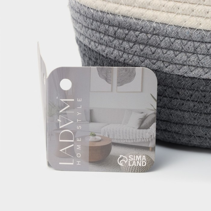 Корзина для хранения плетёная ручной работы LaDо́m «Вега», хлопок, 32×21×12 см, цвет серый