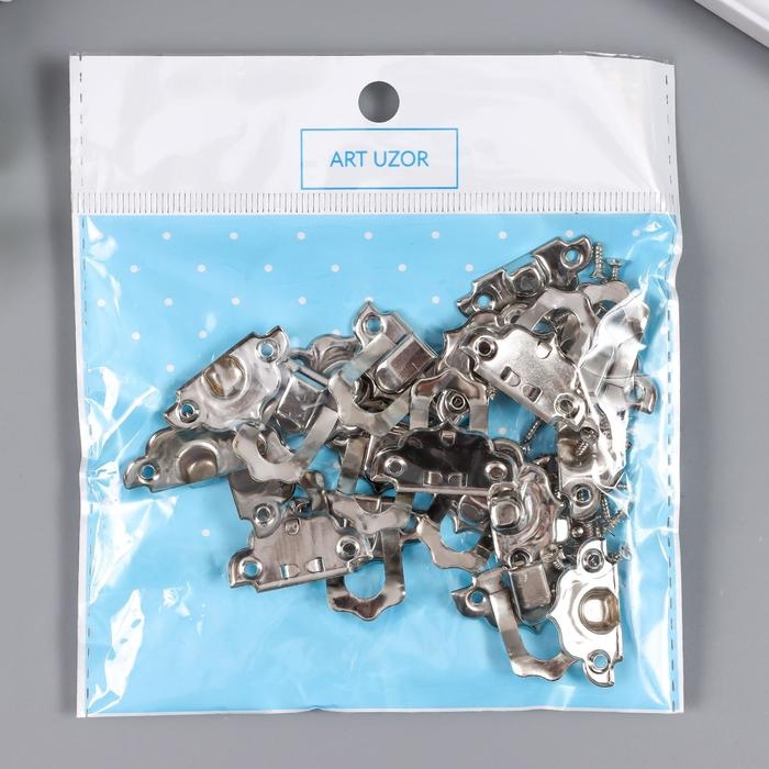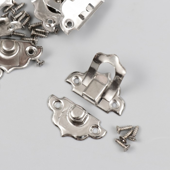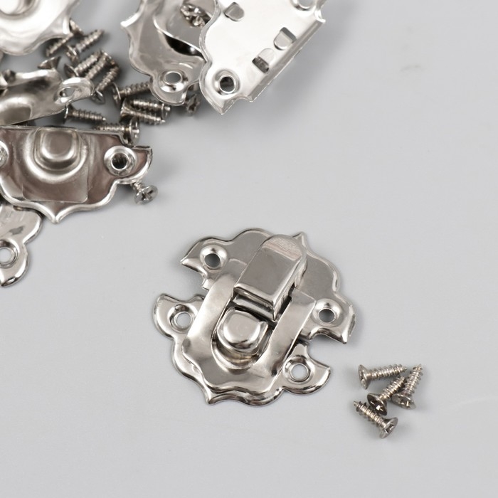 Замок металл для шкатулки серебро + гвозд. набор 10 шт 2,9х3 см