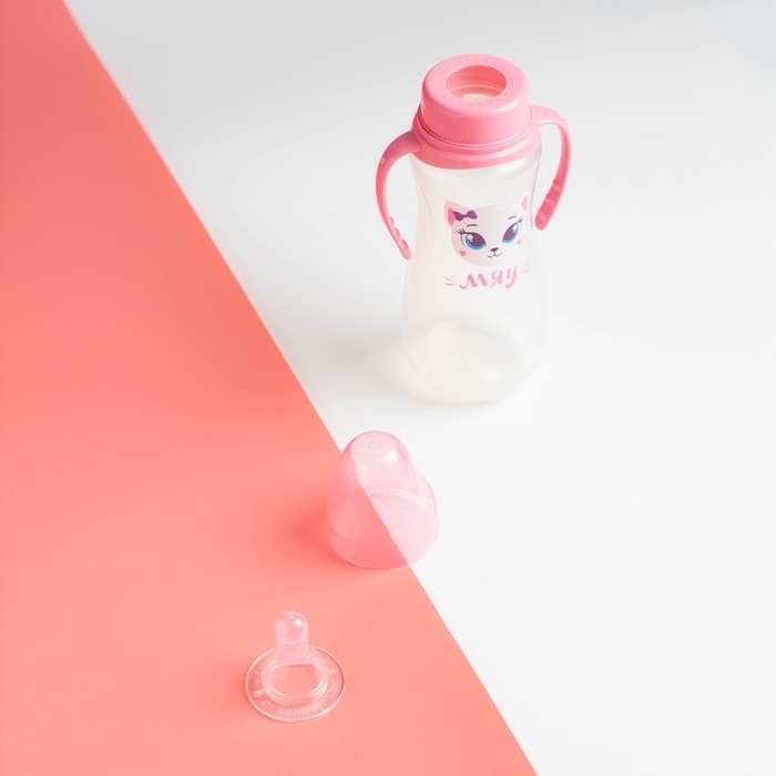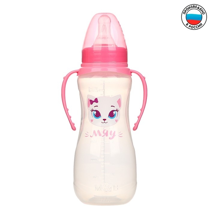Бутылочка для кормления M&B «Кошечка Софи», классическое горло, приталенная, с ручками, 250 мл., от 0 мес., розовый