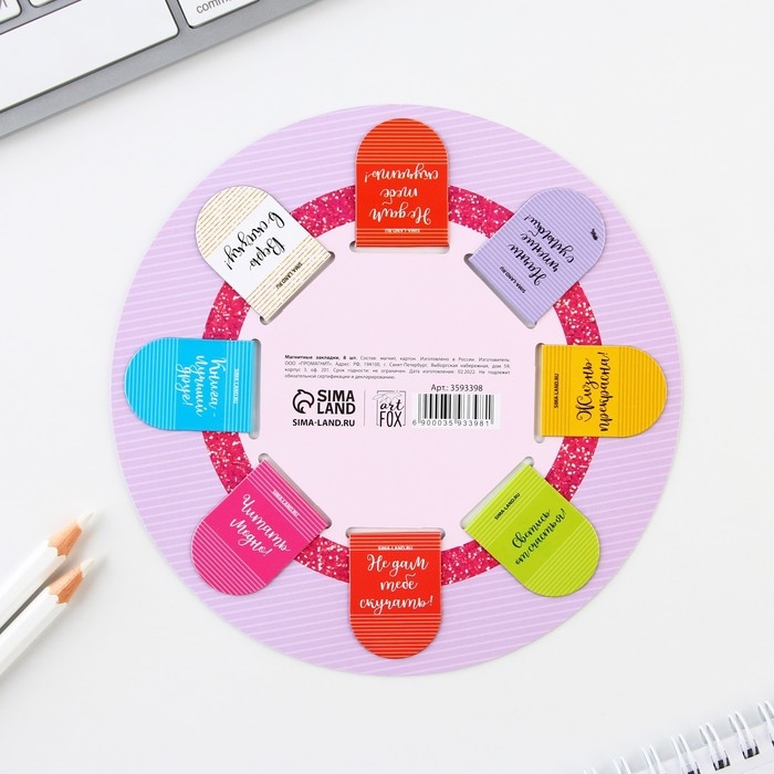 Закладки магнитные для книг, 8 шт «Котов и книг много не бывает», 15 х 15 см