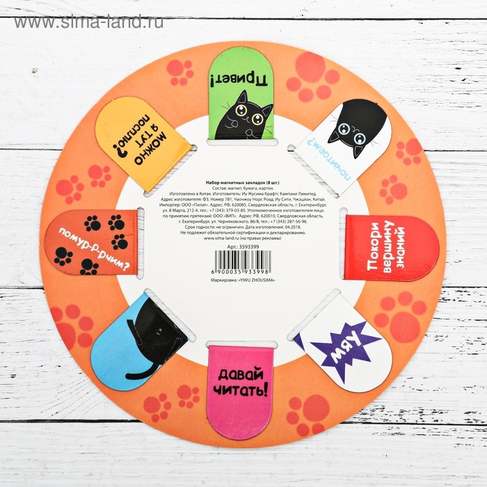 Закладки магнитные для книг, 8 шт «Книжный котоман», 15 х 15 см