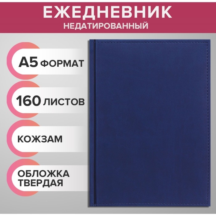 Ежедневник недатированный А5, 160 листов "Вивелла", обложка искусственная кожа, перфорация углов, тёмно-синий