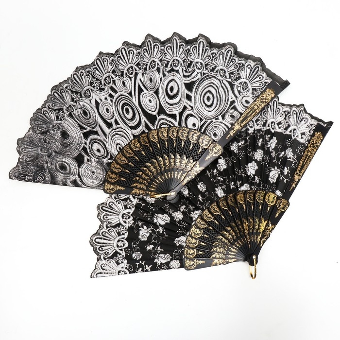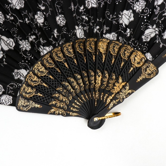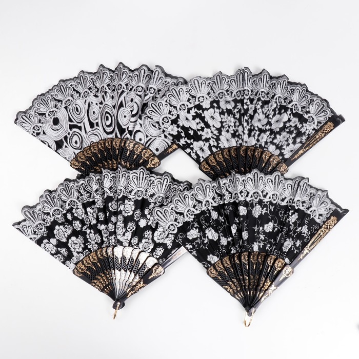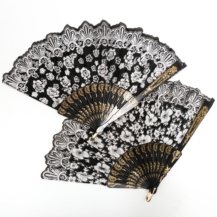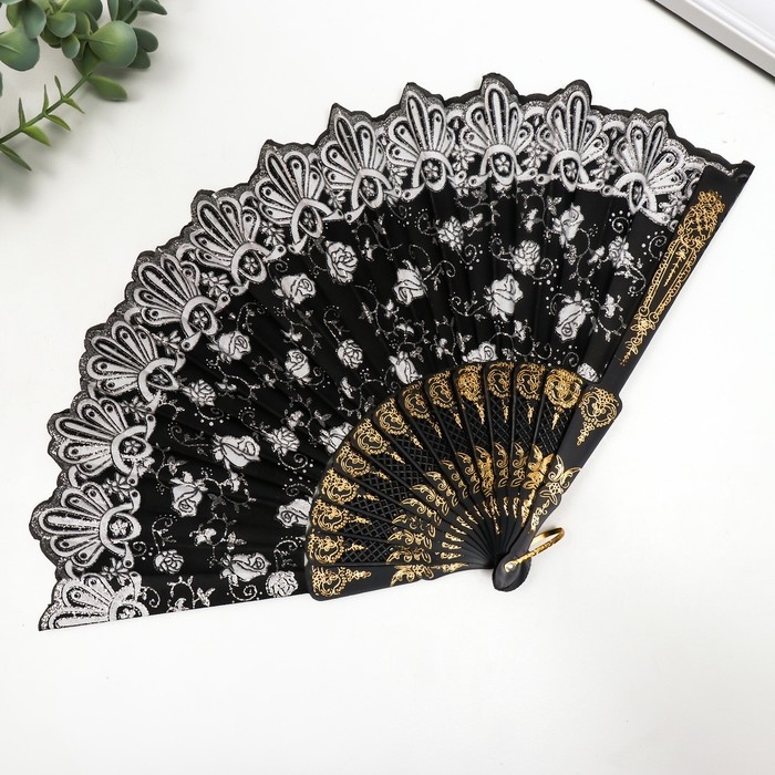 Веер пластик, текстиль "Россыпь цветов" с золотом МИКС 23 см
