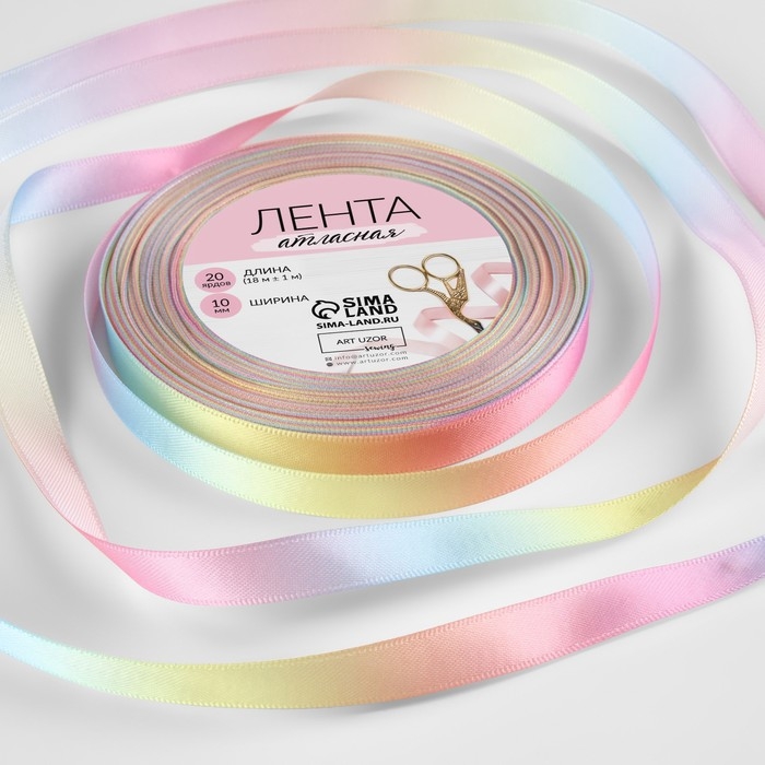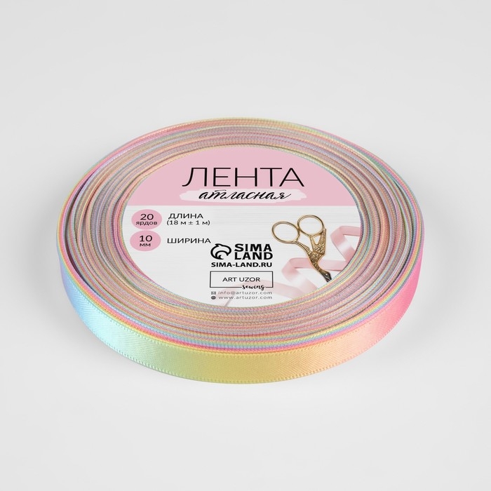 Лента атласная «Радуга», 10 мм × 18 ± 1 м, разноцветная