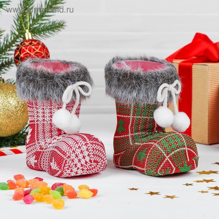 Конфетница «Сапожок», с ёлочками, на завязках, цвета МИКС