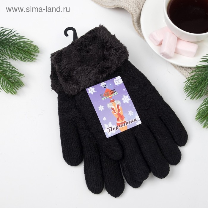 Перчатки женские термо, цвет чёрный, размер 18-20
