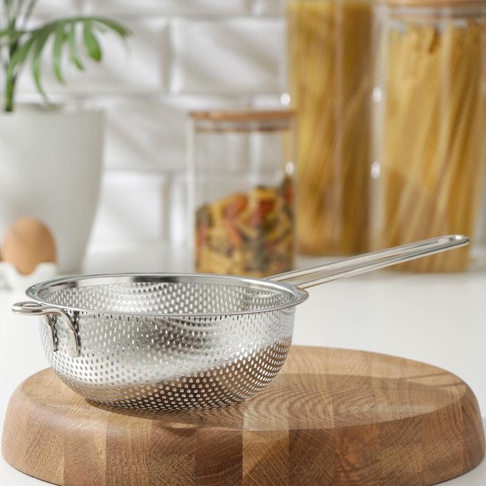 Дуршлаг из нержавеющей стали «Марко», d=16,5 см, длинная ручка, цвет хромированный