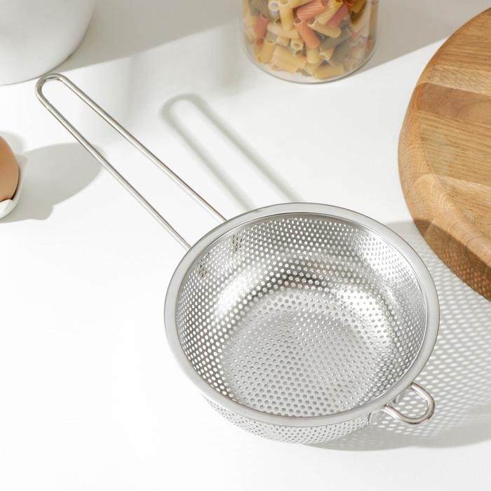 Дуршлаг из нержавеющей стали Доляна, 1,2 л, d=20 см, толщина 0,3 мм, длинная ручка